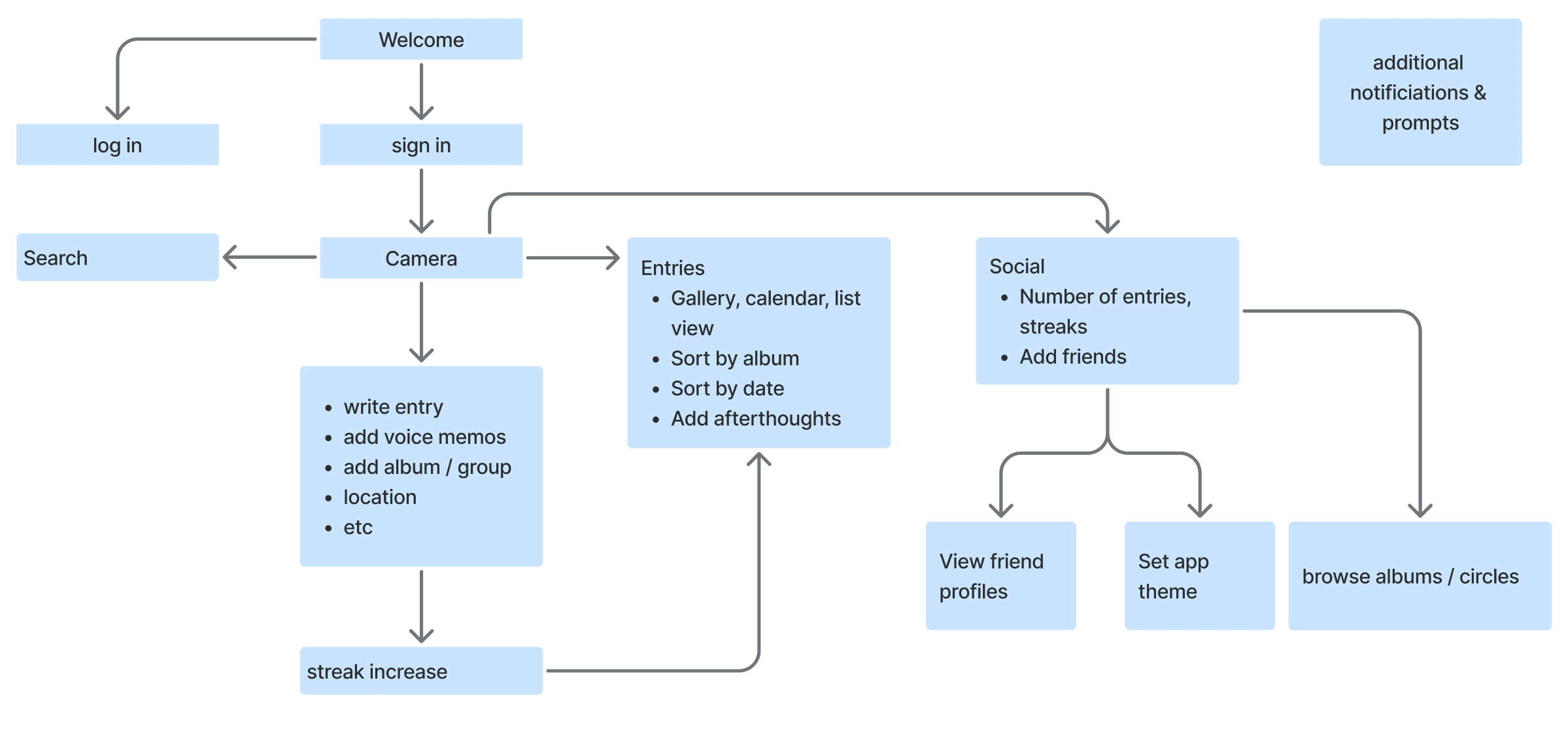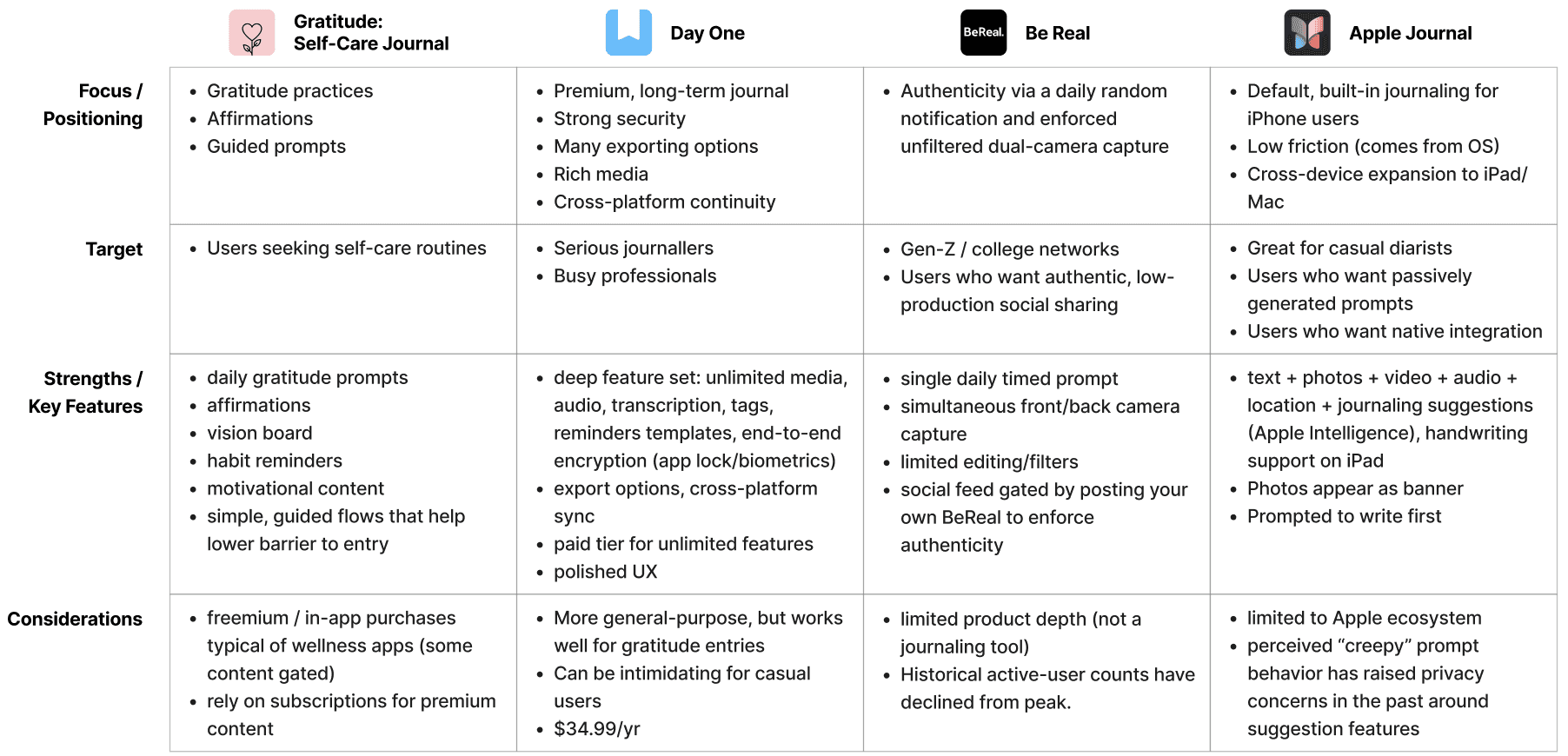 After doing some research on various maps and then looking further in the most similar apps and the biggest journalling apps in the market, we discovered that there has yet to be an app on the market that focuses primarily on personal photo-based journalling.