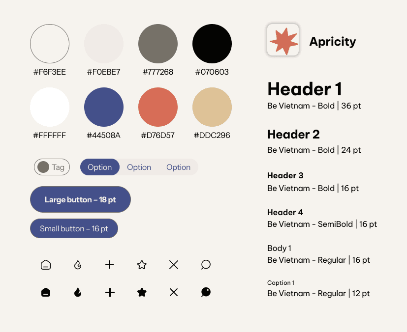 The word "apricity" means the warmth of the sun during the winter. Keeping this definition in mind, I wanted to incorporate both warm and cool tones, while giving the overall app a warm yet minimalistic feel. I explore various fonts and graphic styles.