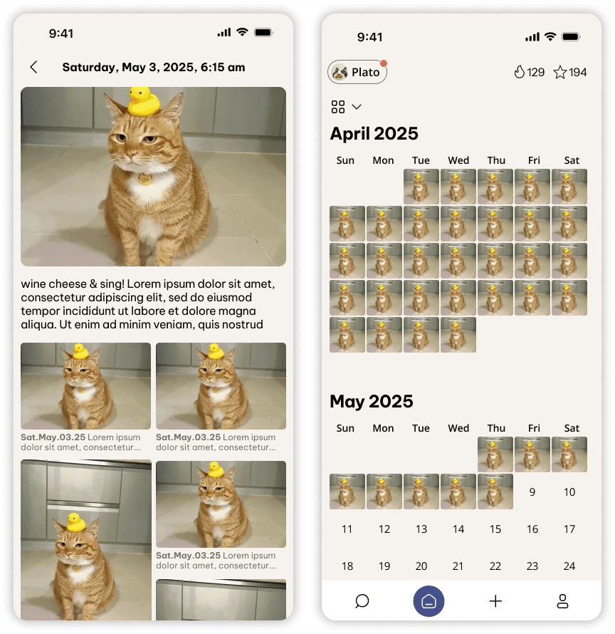 From user tests and feature suggestions, me and Arthur developed a general structure for the gratitude journal.