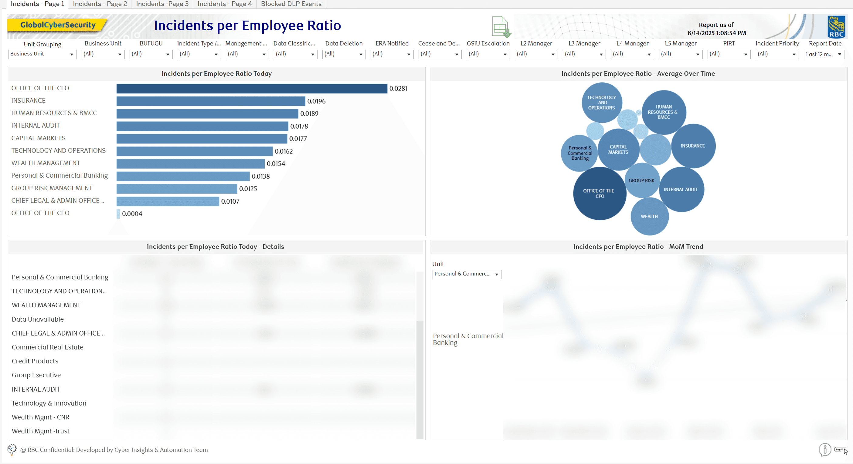 Whether or not employees realize the risks behind their actions, potential DLP incidents are flagged every day. My first challenge was to understand how RBC approaches cybersecurity and data protection as a whole.