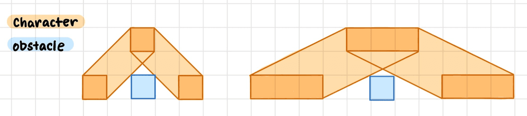 Unlike the original no internet dinosaur, the cat is a long sprite. Thus, we had to further space apart the obstacles to ensure the cat had enough space to land.